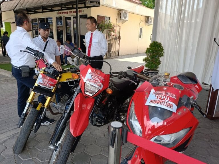 Kemudian 1 unit motor Kawasaki KLX, 1 unit motor Kawasaki Ninja, 1 unit motor Vixion, 1 unit iPhone 14 Pro, 1 unit ATM BCA, dan uang tunai Rp 530 juta, terang Dirnarkoba Polda Jatim.