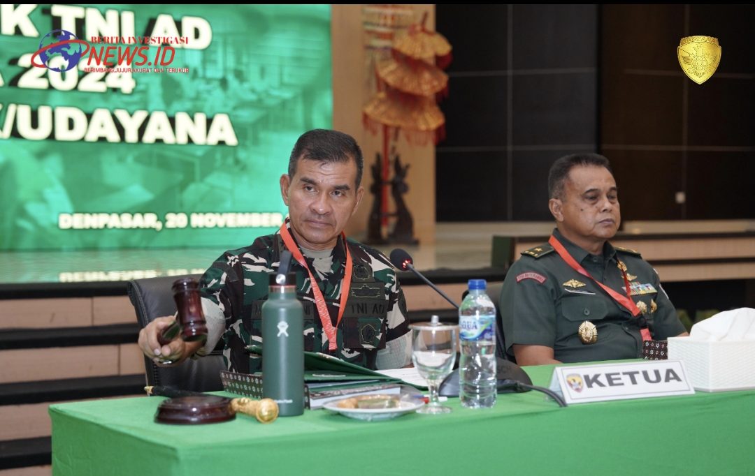 Beritainvestigasinews.id, Kota Denpasar, Bali, - Pangdam IX/Udayana Mayjen TNI Muhammad Zamroni, S.IP., M.Si., memimpin langsung Sidang Parade Calon Bintara Prajurit Karier (Caba PK) TNI AD Reguler Pria Gelombang II Tahun Anggaran 2024 tingkat panitia daerah (Panda) Denpasar. Kegiatan ini dilaksanakan di Aula Supardi Makodam IX/Udayana, pada Rabu (20/11/2024).