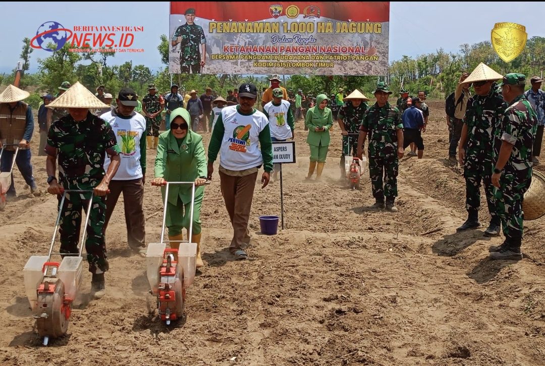 Beritainvestigasinews.id, Lombok Timur, NTB, - Pangdam IX/Udayana Mayjen TNI Muhammad Zamroni, S.IP., M.Si., didampingi Ketua Persit Kartika Chandra Kirana Daerah IX/Udayana, Ny. Dessy Muhammad Zamroni, beserta rombongan melaksanakan kegiatan penanaman jagung di Dusun Cemporon, Desa Pringgabaya Utara, Kecamatan Pringgabaya, Kabupaten Lombok Timur, pada Kamis (21/11/2024). Kegiatan ini merupakan bagian dari upaya mendukung ketahanan pangan dan mendorong kemandirian masyarakat melalui sektor pertanian.