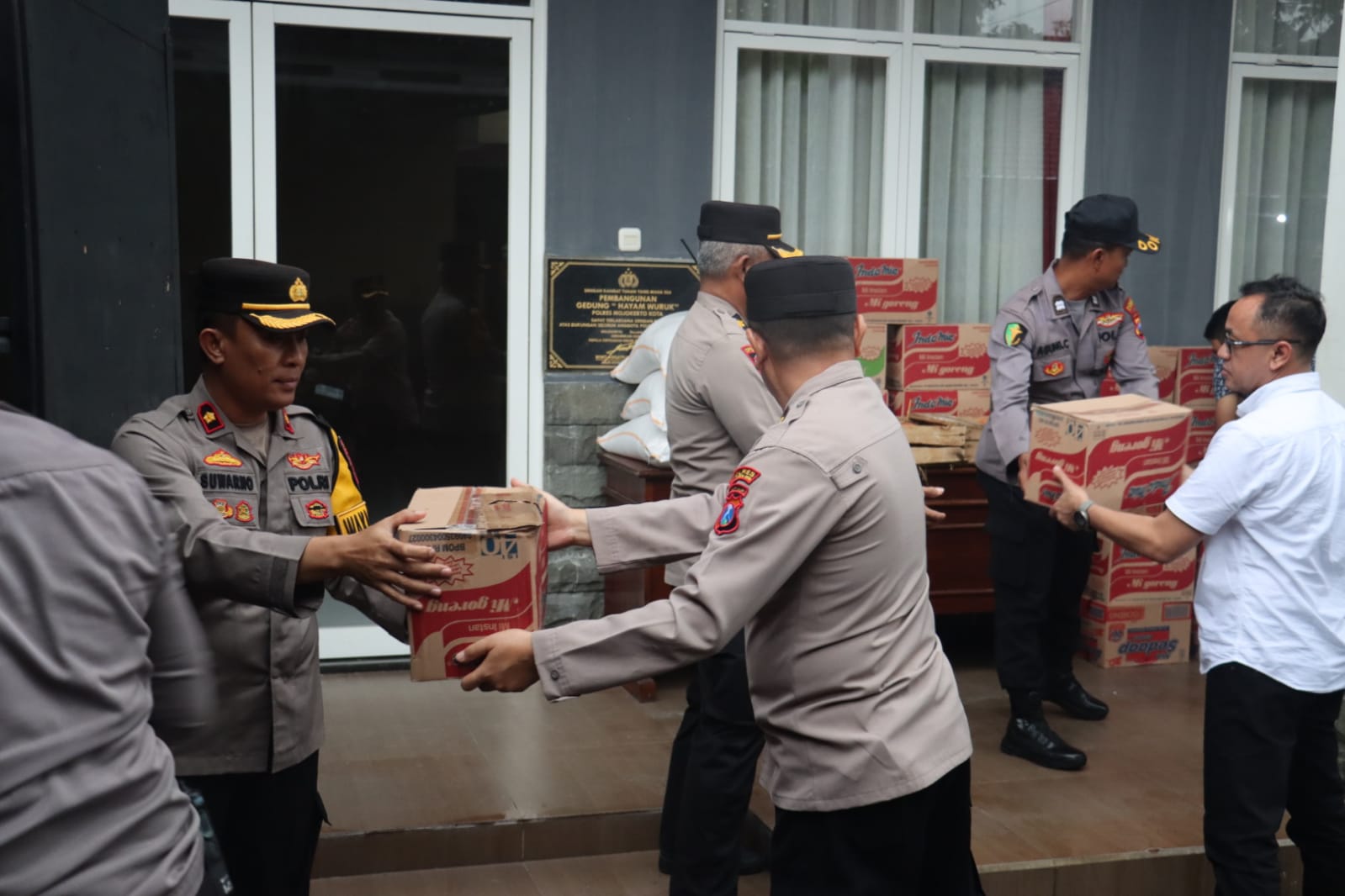 Sebelumnya Polres Mojokerto Kota telah membagikan nasi bungkus kepada warga yang terdampak.