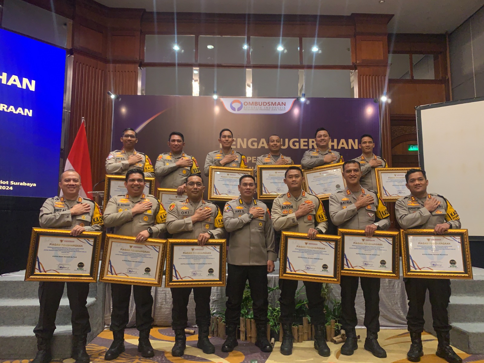 Penghargaan ini diberikan langsung oleh perwakilan Ombudsman RI di Hotel JW Marriot Surabaya pada 13 Desember 2024 pekan lalu.