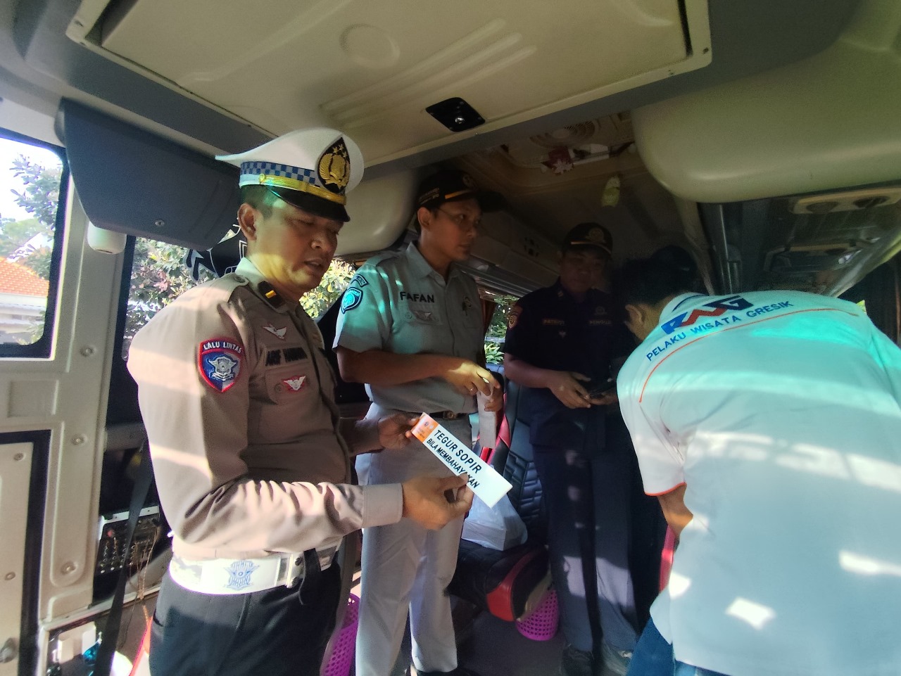 Dalam kesempatan tersebut, himbauan keselamatan juga disampaikan kepada para sopir, kernet, dan penumpang, menekankan pentingnya menjaga kondisi fisik pengemudi dan mematuhi aturan lalu lintas.