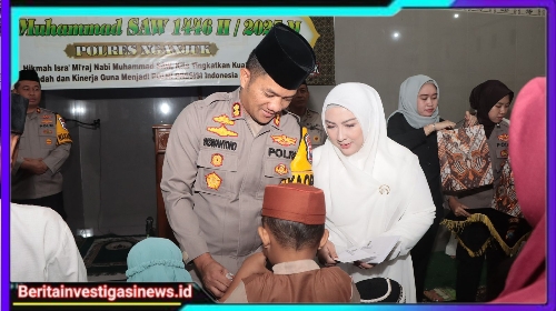 Beritainvestigasinews.id, Nganjuk, - Polres Nganjuk menggelar peringatan Isra Miraj Nabi Muhammad SAW tahun 1446 H di Masjid Al-Ikhlas Polres Nganjuk pada Selasa (28/1/2025) pukul 09.00 WIB.
