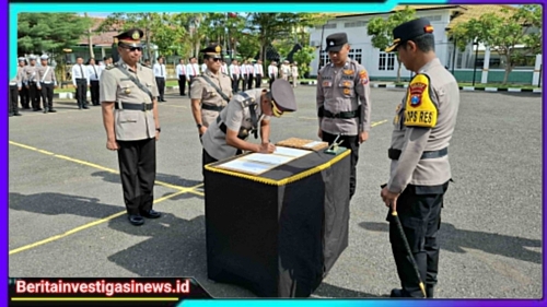 Beritainvestigasinews.id, Sampang, Kapolres Sampang AKBP Hartono, S.Pd., M.M. pimpin upacara Serah Terima Jabatan (Sertijab) Kabagops Polres Sampang dan Kabag SDM Polres Sampang, rabu (12/02/2025) pagi.