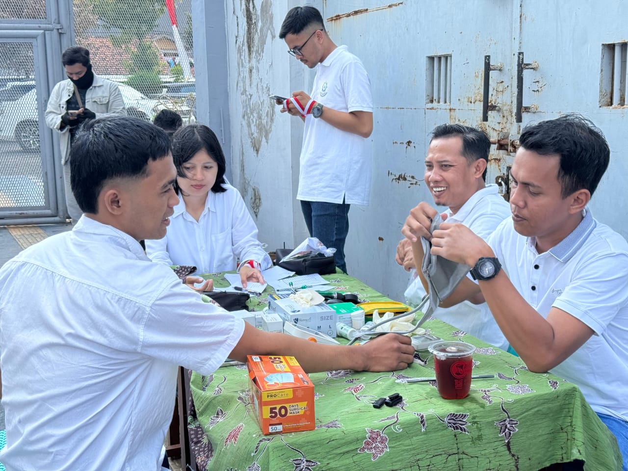 Petugas PMI yang hadir membawa peralatan lengkap dan bekerja dengan sigap. Beberapa peserta tampak tersenyum santai, sementara yang lain bercengkerama sambil menunggu giliran. Kegiatan ini tidak hanya menjadi ajang berbagi kehidupan melalui donor darah, tetapi juga menjadi sarana mempererat silaturahmi antarpegawai serta menunjukkan kepedulian terhadap masyarakat yang membutuhkan.